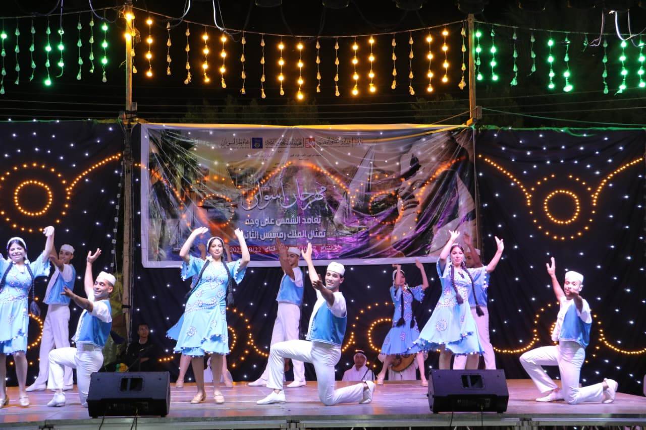أضاءت العروض الفلكلورية لفرق الفنون الشعبية، فعاليات الحفل الفني الثاني الذي شهده مسرح السوق السياحي بمدينة أبو سمبل، في ليلة تعامد الشمس، ضمن مهرجان أسوان الذي يقام تحت رعاية الدكتور أحمد فؤاد هنو وزير الثقافة، واللواء دكتور إسماعيل كمال محافظ أسوان، وتنظمه الهيئة العامة لقصور الثقافة برئاسة اللواء خالد اللبان، احتفالا بظاهرة تعامد الشمس على وجه الملك رمسيس الثاني.