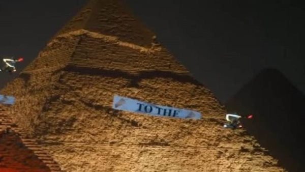قدمت طائرات شراعية عرضا جويا مصغرا، حاملة لافتات كتب عليها "أهلا بكم في أرض السلام"، ترحيبا بضيوف مصر الحاضرين لاحتفالية افتتاح المتحف المصري الكبير.
