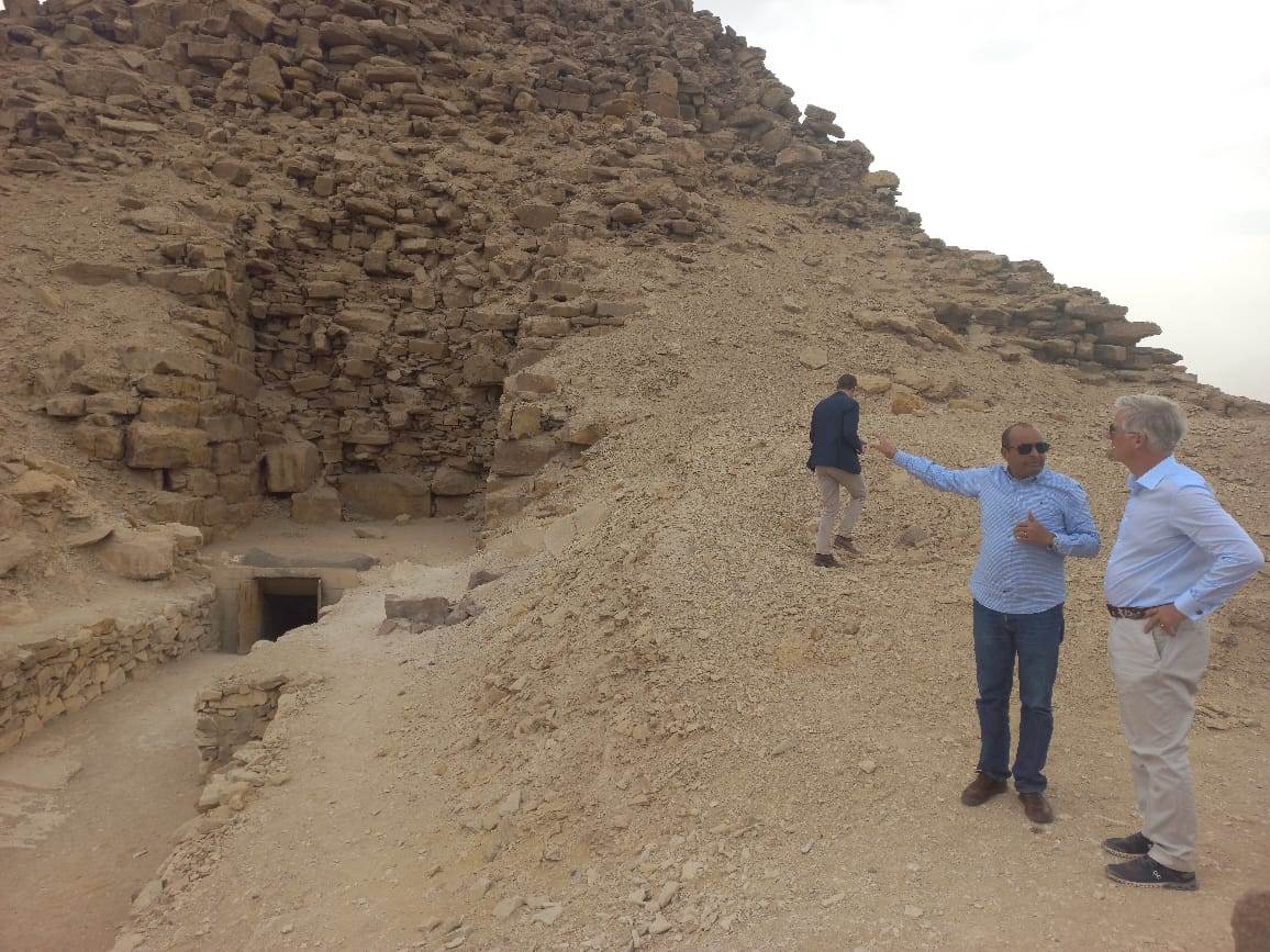 وعقب ذلك، توجه ملك بلجيكا إلى منطقة أبوصير الأثرية لزيارة أهرامات ملوك الأسرة الخامسة المعروفة بأهرامات ملوك الشمس، حيث استمع إلى شرح مفصل من الدكتور محمد إسماعيل خالد حول فلسفة بناء هذه الأهرامات، وأبرز الاكتشافات الأثرية الحديثة بالمنطقة وفي مقدمتها الكشف لأول مرة عن سلسلة من المخازن داخل هرم الملك ساحورع، ما يساهم في كشف أهم ملامح الهندسة المعمارية الجنائزية لهذا الملك الذي يعد ثاني ملوك الأسرة الخامسة “2400 ق.م” وأول من اتخذ أبو صير موقعًا لمجموعته الجنائزية.