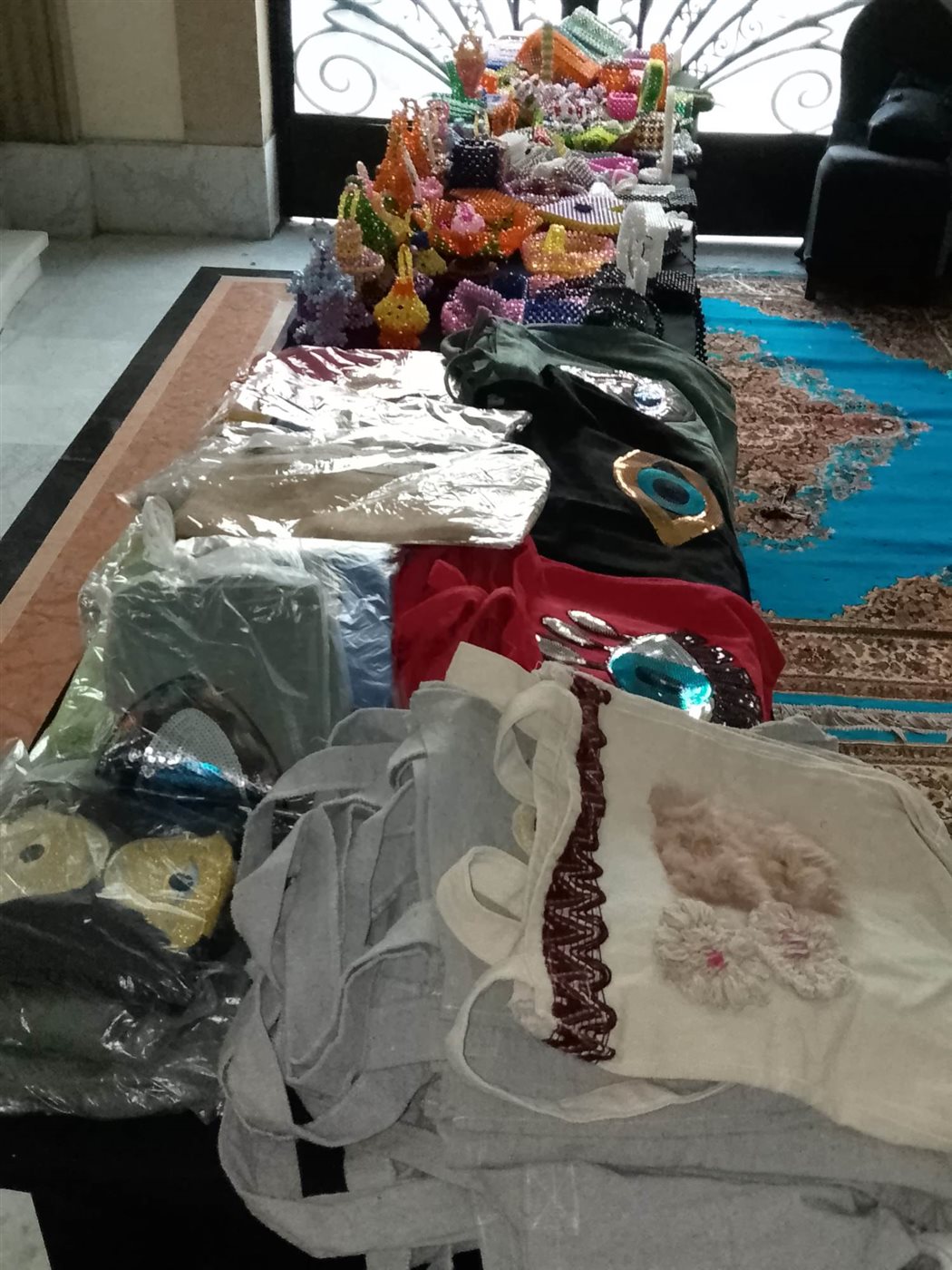 ويقوم معرض الحرف اليدوية والتراثية بعرض مقتنيات والتي تقوم وتنتجها المرأة المصرية في كافة المحافظات المختلفة من اجل توفير فرص عمل للسيدات وهناك اقبال كبير علي تلك الخرف اليدوية والتراثية والتي يتم إنتاجها بجودة عالية.