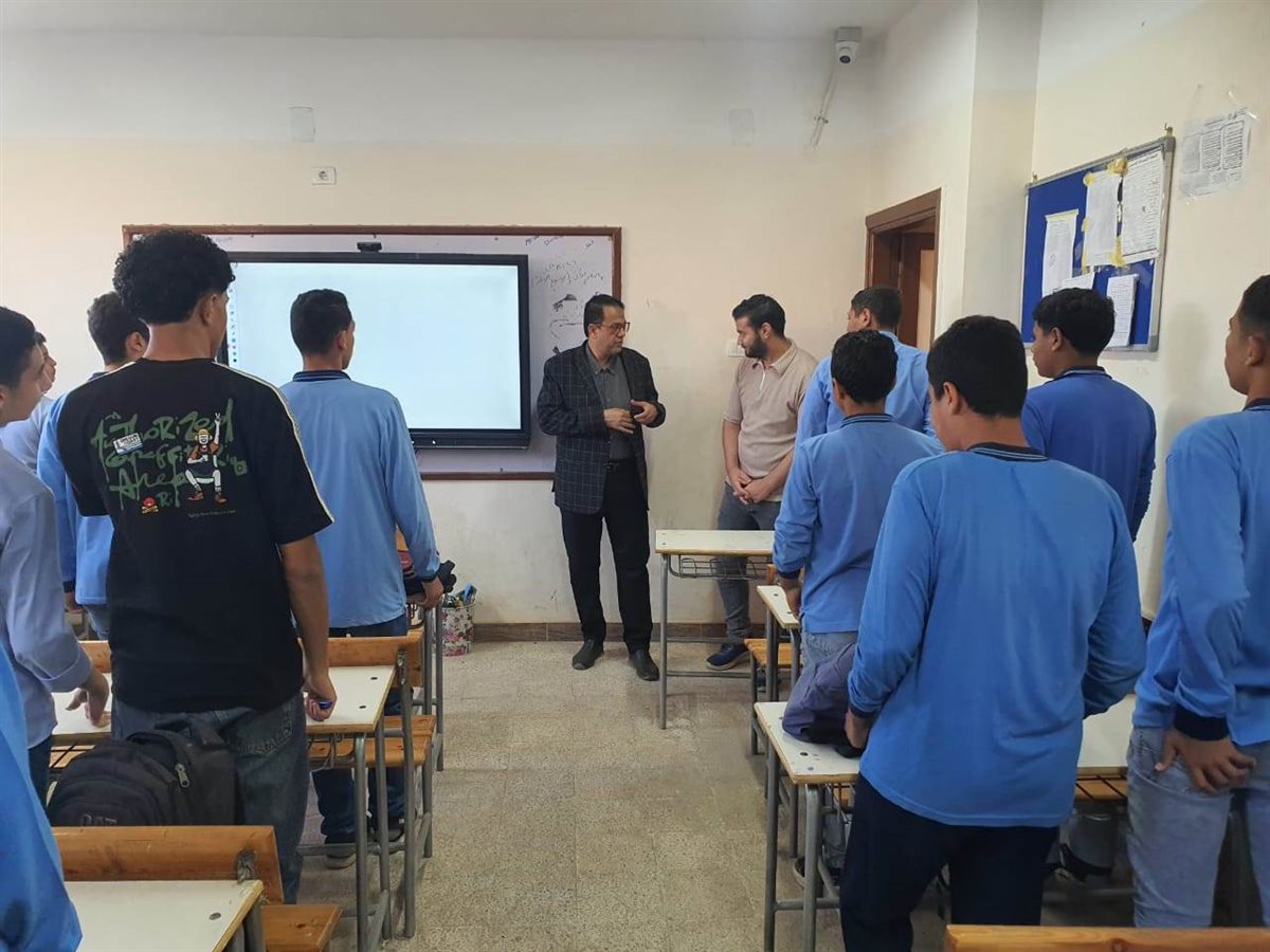 كما توجه وكيل الوزارة إلى مدرسة عبدالعزيز محمد الحو الثانوية، بإدارة قطور التعليمية والتي تضم ٣٩٤ طالبا، حيث قام بتفقد المباني المدرسية وعدد من الفصول، وأشاد بالحضور الطلابي بالمدرسة، وانضباط وانتظام الفصول والإشراف، كما اطمأن إلى تواجد أمن البوابة ودفتر الأمن، وانضباط الإشراف في الأدوار والفناء، وكثافة الفصول، واطمأن إلى انتظام سير العملية التعليمية، وانضباط المدرسة، وتوافر وسائل الأمن والسلامة بالمدرسة، ووجه بالإعلان عن مجموعات الدعم المدرسي في أماكن واضحة للطلاب، والاهتمام بتسجيل الغياب الإلكتروني بصورة يومية، والاهتمام بالتشجير ونظافة الفصول والفناء وحجرات النشاط.