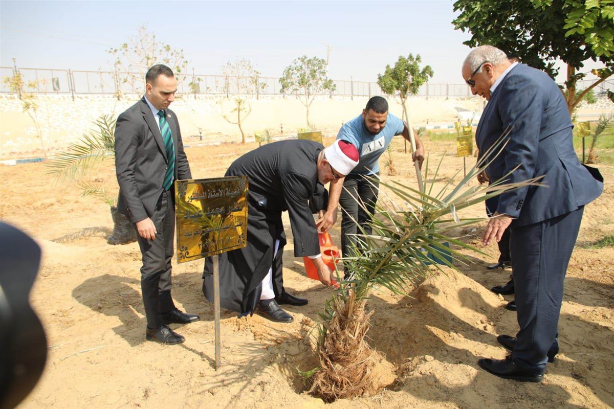 وخلال الزيارة، تفقد مفتي الجمهورية حديقة 30 يونيو بمدينة الخارجة، حيث قام فضيلته بغرس نخلة تحمل اسم فضيلته، ضمن فعاليات المبادرة الرئاسية للتوسع في زراعة النخيل وتعزيز إنتاجية التمور بالمحافظة، كما شملت الجولة زيارة مجمع المصالح الحكومية للخدمات الذكية بالمحافظة.