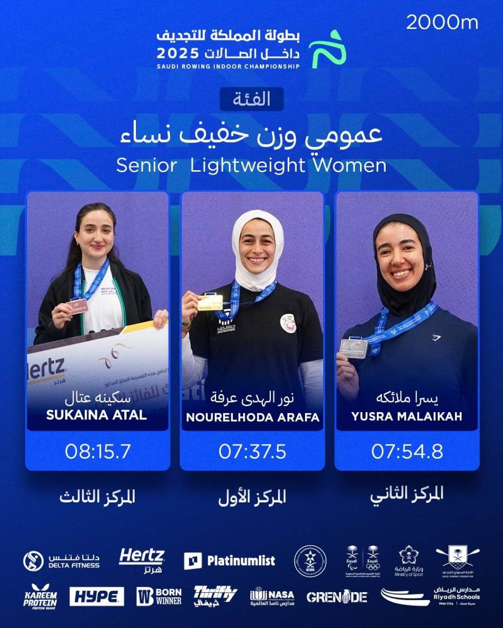 - حصول نور الهدى عرفة على الميدالية الفضية في الفئة العمرية (23–39) والميدالية البرونزية في الترتيب العام ببطولة العالم للتجديف داخل الصالات 2025.