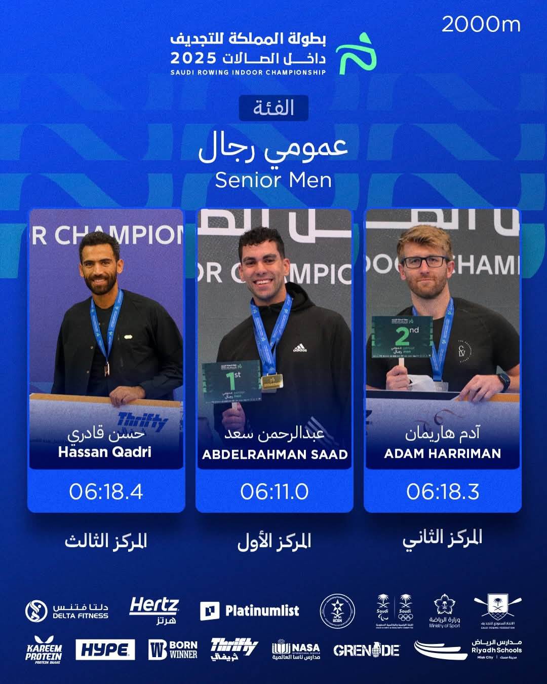 في إنجاز رياضي جديد يُضاف إلى سجل الرياضة المصرية، تألق ثلاثة من أبطال التجديف في بطولة المملكة العربية السعودية للتجديف داخل الصالات (الأرجوميتر)، والتي أُقيمت يوم 5 ديسمبر، وحققوا نتائج تاريخية بأزمنة غير مسبوقة، لترتفع راية مصر عاليًا في واحدة من أقوى بطولات المنطقة.