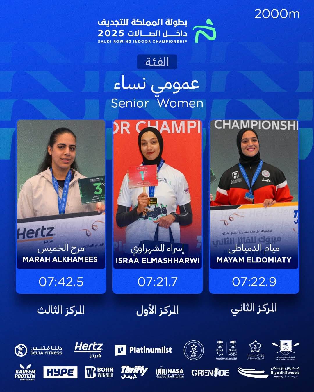 المركز الأول – نور الهدى عرفة لاعبة نادي المعادي واليخت – سباق عمومي خفيف الوزن وحققت زمنًا غير مسبوق في المملكة العربية السعودية.