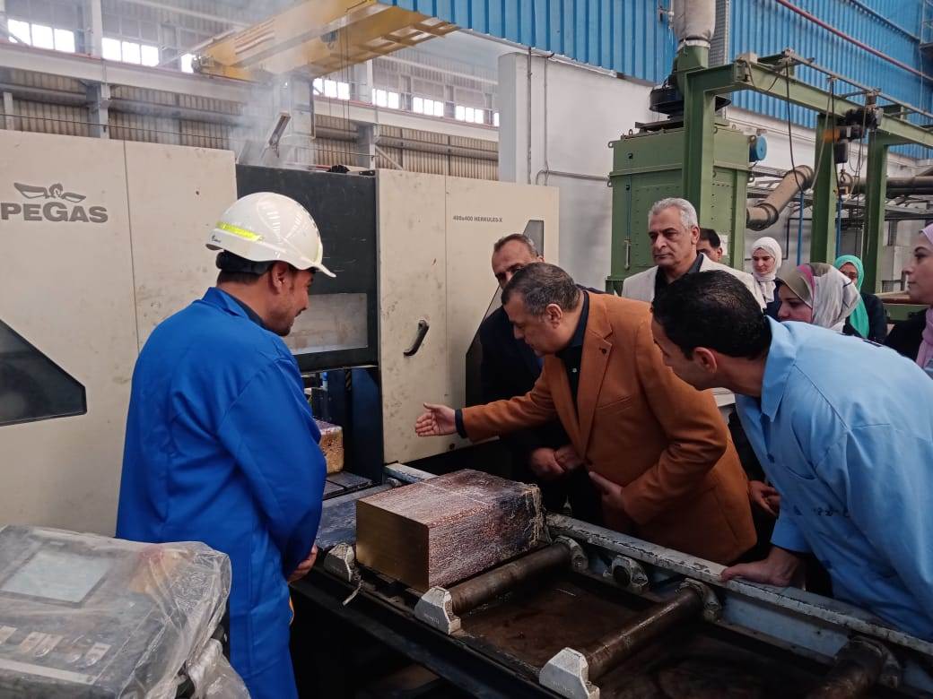 وتفقد وزير الدولة للإنتاج الحربي مراحل التصنيع بخطوط الإنتاج بشركة حلوان للصناعات غير الحديدية، وعلى رأسها خط إنتاج درفلة شرائط النحاس، وذلك بداية من وصول المواد الخام للخطوط وتنفيذ مراحل الإنتاج المختلفة، واستمع الوزير إلى ما استعرضه المهندس محمد العشماوي، رئيس مجلس إدارة الشركة، وكذا أطقم العمل بها من بيانات ومعلومات حول الموقف التنفيذي لمعدلات الإنتاج والأداء خلال الفترة السابقة، وموقف المخزون وأعمال الصيانة وإجراءات الأمن الصناعي ومدى الالتزام بالتوقيتات الزمنية المحددة لإنهاء المشروعات التي يتم تنفيذها، كما استمع الوزير إلى مطالب ومقترحات العاملين بالشركة بشأن العملية الإنتاجية، وحثهم على بذل المزيد من الجهد والعطاء والعمل الدؤوب، ووجّه بالسعي إلى توفير بيئة عمل مواتية تسهم في تحسين الأداء وزيادة الإنتاجية، وتعزيز الدور الحيوي الذي تقوم به الشركة لدعم الاقتصاد الوطني.