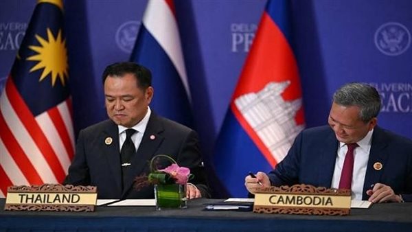 ووقعت تايلاند وكمبوديا، اليوم السبت، وبعد 3 أيام من المحادثات المكثفة، اتفاقا لوقف فوري لإطلاق النار، في خطوة تهدف إلى إنهاء أسابيع من الاشتباكات الحدودية العنيفة بين البلدين.