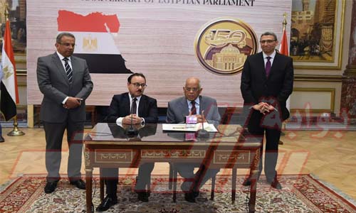 "عبد العال" و"القاضى" يدشنان طابع بريد بمناسبة 150 عام برلمان
