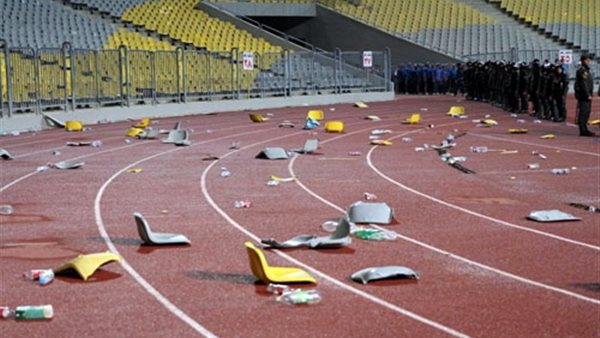 وألقت الجماهير بمقاعد المدرجات داخل ملعب المباراة لتعبر عن غضبها بعد خسارة البطولة.