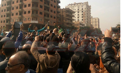 طالب عدد من المصريين المتواجدين أمام الكاتدرائية بالعباسية لحضور صلاة الجنازة على شهداء الحادث الإرهابي الذي وقع أمس داخل الكنيسة البطرسية.
