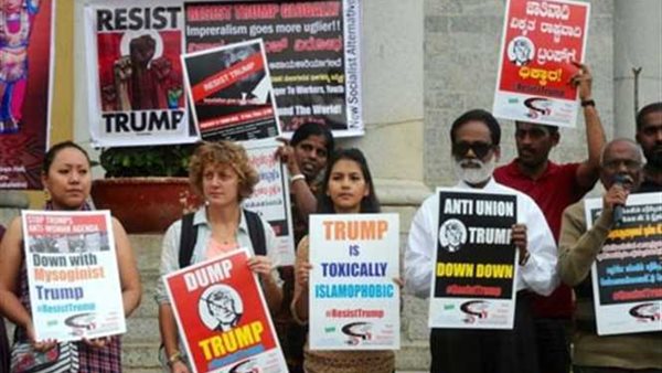 وتجمع آلاف من الأشخاص في المطارات الأمريكية للاحتجاج على قرار المنع بمن فيهم محامون عرضوا خدماتهم القانوينة مجانا على الأشخاص الممنوعين من دخول الو لايات المتحدة.