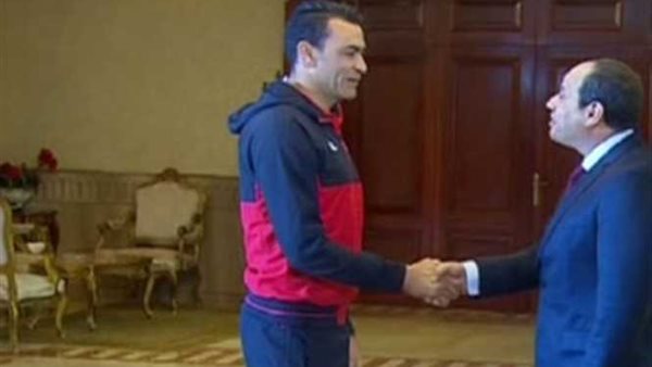 وخلال مصافحة الحضري للسيسي، دار بينهما حوار صغير، أشاد خلاله الرئيس بأداء حارس الفراعنة، وشكره على مجهوده المبذول بالبطولة الإفريقية.
