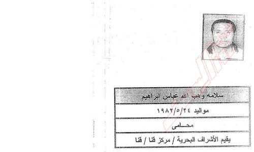 سلامة وهبة الله عباس إبراهيم، مواليد 1982 يقيم بقنا.