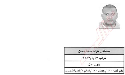 وتواصل أجهزة الأمن جهودها لتحديد إنتحارى حادث كنيسة مارجرجس بالغربية وملاحقة باقى العناصر الهاربة لتلك البؤرة الإرهابية وهم :
