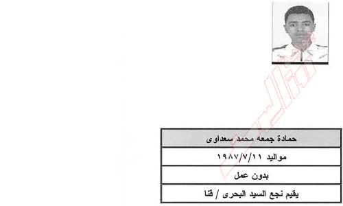 حمادة جمعة محمد سعداوى، مواليد 1987 يقيم بقنا.