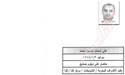 على شحات حسين محمد، مواليد 1978 يقيم بقنا.