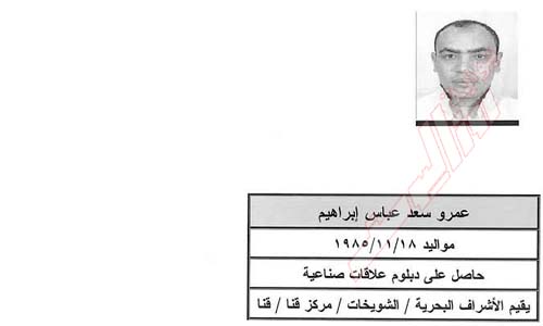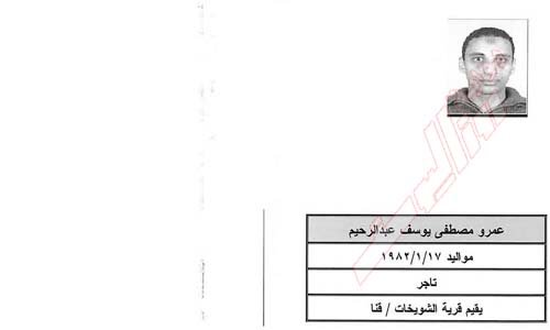 عمرو مصطفى يونس عبدالرحيم، مواليد 1982 يقيم بالشويخات بقنا.