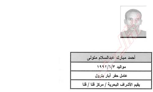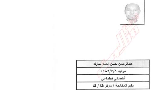 عبدالرحمن حسن أحمد مبارك، مواليد 1982 يقيم بقنا.