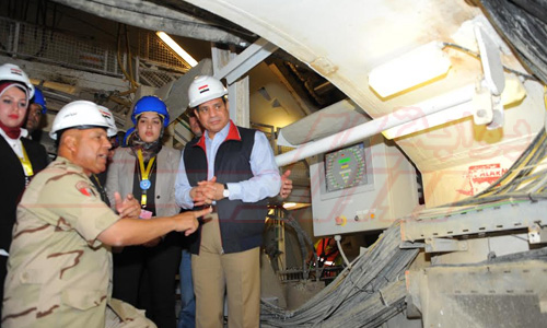قام الرئيس عبد الفتاح السيسي صباح اليوم بتفقد سير العمل في مشروع تنفيذ أنفاق قناة السويس وبصحبته عدد من الشباب، حيث استمع إلى شرح من اللواء كامل الوزير رئيس الهيئة الهندسية للقوات المسلحة حول تطورات تنفيذ المشروع. كما صعد الرئيس إلى ماكينة الحفر لمشاهدة أعمال الحفر الجارية، واستقل كذلك عربة لتفقد الأنفاق من الداخل. والتقى كذلك الرئيس بمجموعة من المسئولين والعاملين بالأنفاق وتبادل معهم الحديث، مشيداً بالجهود الضخمة التي يقومون بها في تنفيذ هذا المشروع.