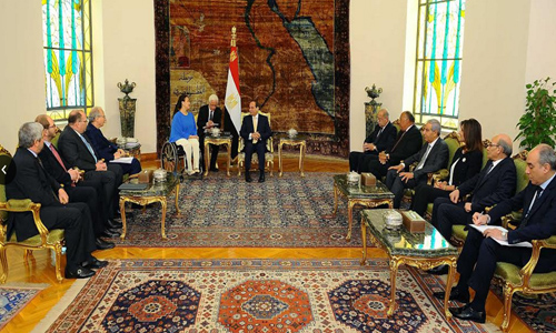استقبل الرئيس عبد الفتاح السيسي اليوم بقصر الاتحادية جابرييلا ميتشيتي نائبة رئيس جمهورية الأرجنتين التي تقوم بزيارة رسمية لمصر.