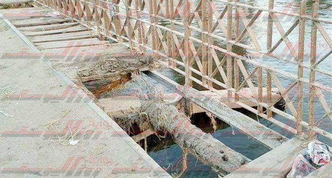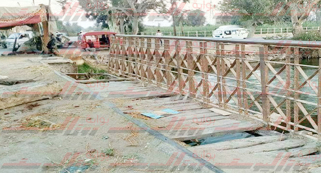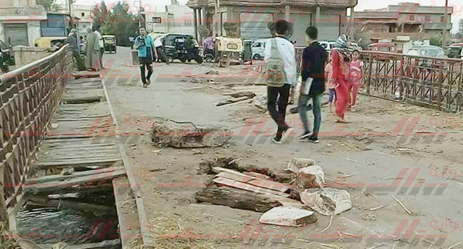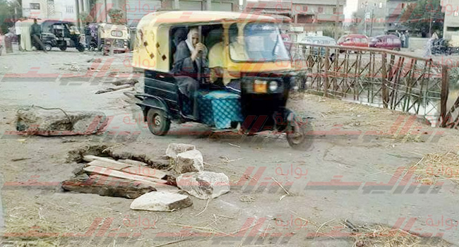 الصور توضح مدى تهالك ،وانهيار الكوبرى الحيوي الذي يمر فوق ترعة المحمودية ،ويشكل خطورة كبيرة على المارة والسيارات ؛حيث يتسبب فى انفجار إطارات السيارات وانقلابها.