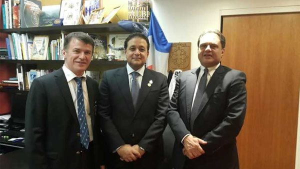 التقى النائب علاء عابد رئيس الهيئة البرلمانية لحزب المصريين الأحرار بمجلس النواب ورئيس لجنة حقوق الإنسان بالبرلمان مع النائب فيليب فيليو عضو البرلمان الفرنسي ورئيس جمعية الصداقة المصرية الفرنسية بالبرلمان الفرنسي بحضور السفير إيهاب بدوي سفير مصر في فرنسا.