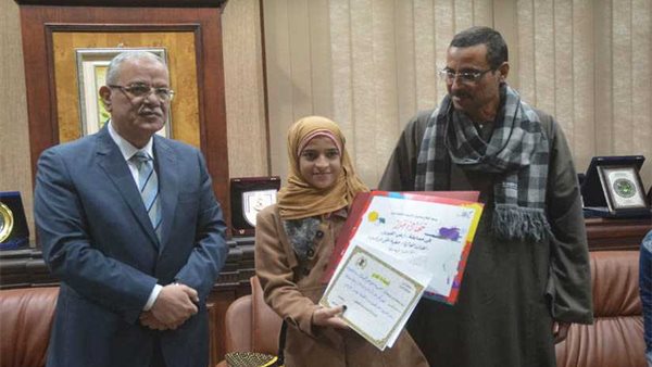 محافظ المنيا يكرم طالبين فازا بالمراكز الأولى في مسابقة "أرض الفيروز" (صور)
