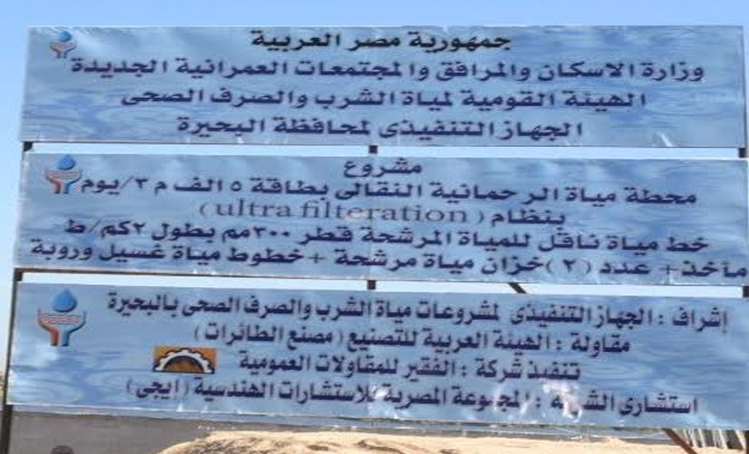 كما تفقدوا محطات مياه الشرب بالرحمانية كما قاما بوضع حجر أساس محطة مياه الرحمانية الجديدة، وتفقد محطة مياه الرحمانية بقرية المجد، وتفقد محطة معالجة الصرف الصحي بقرية سرنباي بالمحمودية، ووضع حجر أساس توسعات صرف صحي إدكو، تفقد محطة معالجة الصرف الصحي بكفر الدوار، تفقد محطة مياه الشرب بأبو حمص.