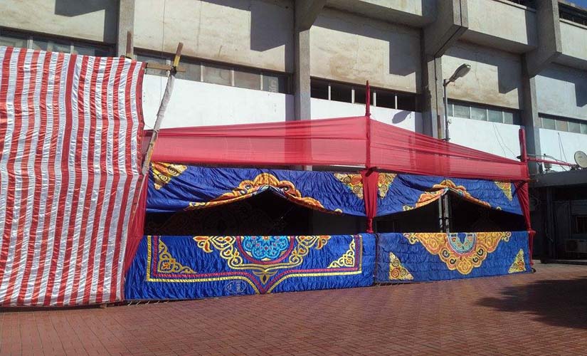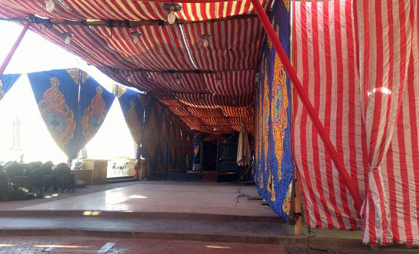 تم عمل كردون أمام الخيمة سوف يتواجد به المرشحين وفرق الدعاية الأخيرة قبل الدخول للتصويت،التصويت الذي سيكون داخل صناديق زجاجية.