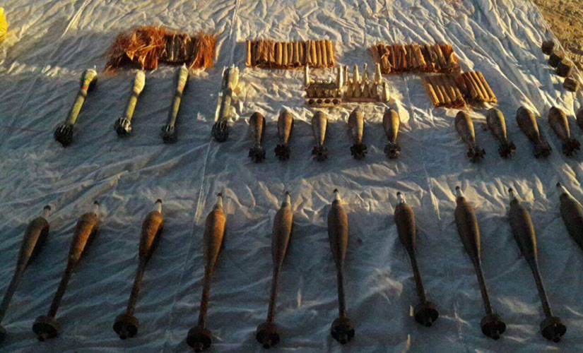 فى إطار الجهود المكثفة للقوات المسلحة لدحر الإرهاب من شمال ووسط سيناء، أعلن المتحدث العسكرى العقيد تامر الرفاعى عن تمكن قوات إنفاذ القانون بالجيش الثالث الميدانى من ضبط مخزن تابع للعناصر التكفيرية بوسط سيناء به [مقذوفات مضادة للدبابات كميات كبيرة من مادة tnt شديدة الانفجار والمستخدمة في تصنيع العبوات الناسفة - أحزمة ناسفة - قذائف هاون ]، وأضاف المتحدث العسكرى أنه تم أيضا اكتشاف وتدمير (3) أوكار و(2) دراجة نارية خاصة بالعناصر التكفيرية.