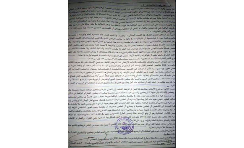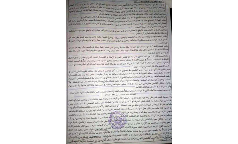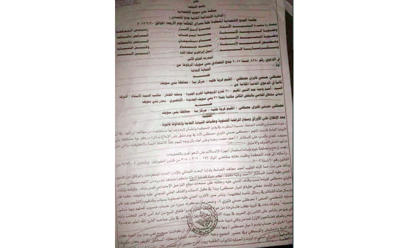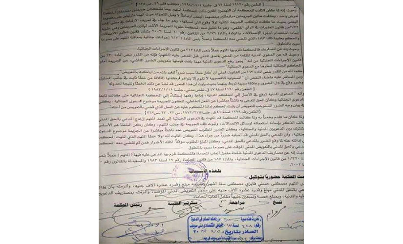 ومن جهتها قضت محكمة جنح الاقتصادية ببني سويف (والمختصة بنظر جرائم الإنترنت) برئاسة المستشار عمرو أبو الأسرار رئيس المحكمة بمعاقبة المتهم مصطفى حسني فايزي في القضية رقم 428 لسنة 2017 بالحبس 6 أشهر وغرامة 10 آلاف جنيه لقيام المتهم بعمل صفحات على التواصل الاجتماعي بسب وقذف مستشار بهيئة قضايا الدولة والتهديد عبر حسابات فيس بوك وإنشاء حسابات وهمية بنشر صور لأهلية المستشار واستخدام عبارات مسيئة لرجال القضاء.