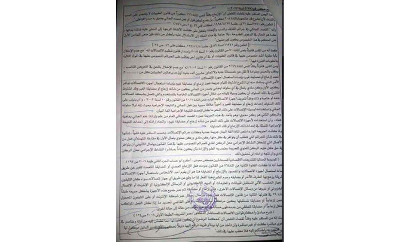 وجعل القانون الجرائم الإلكترونية المتمثلة في محاولات التعدي على حرية الأشخاص أو تعمد مضايقتهم بإساءة استعمال أجهزة الاتصالات جريمة عمدية يعاقب عليها القانون وفقا لقانون العقوبات.