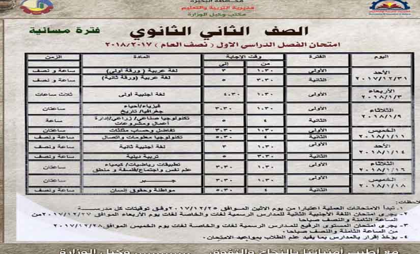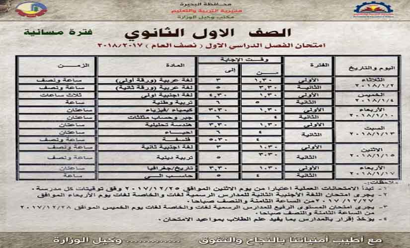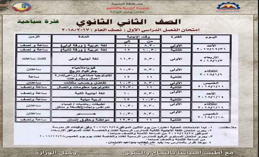 نشر جداول امتحانات المرحلة الثانوية 2018/2017