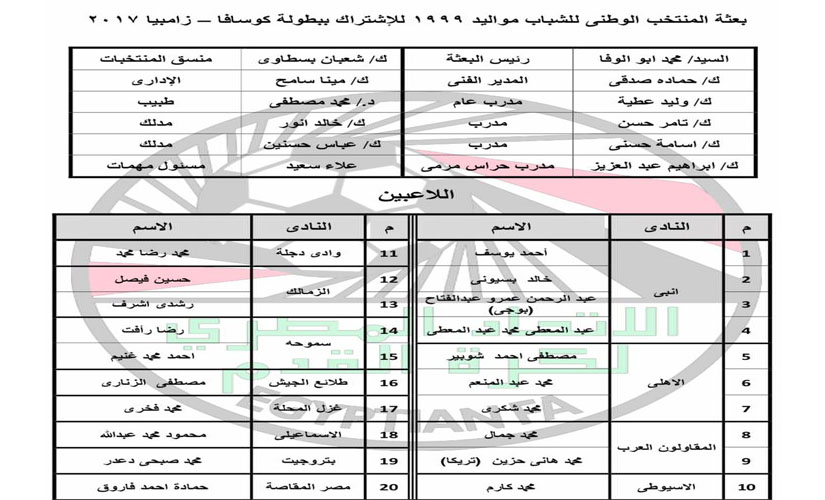 تغادر القاهرة في الثانية والنصف بعد منتصف الليلة بعثة منتخب الشباب الوطني لكرة القدم في طريقها إلى زامبيا التي تصلها بعد ظهر الغد للمشاركة في دورة "كوسافا" التي تنطلق يوم الأربعاء المقبل وتستمر حتى 16 ديسمبر الحالي بمشاركة 12 منتخبا للشباب من دول الجنوب الإفريقي إضافة إلى مصر ، تم تقسيمها إلى 3 مجموعات ، حيث يتأهل أوائل المجموعات وأفضل مركز ثان للدور قبل النهائي