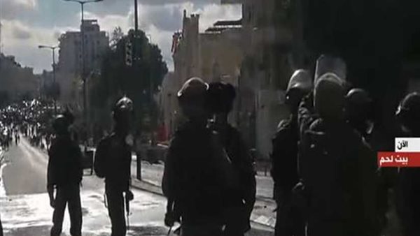 عرضت فضائية اكسترا نيوز، اليوم الخميس، مواجهات بين قوات الاحتلال الإسرائيلي، وبين متظاهرين فلسطينيين، في بيت لحم، وذلك على أثر القرار الذي أصدره دونالد ترامب، الرئيس الأمريكي أمس الأربعاء.