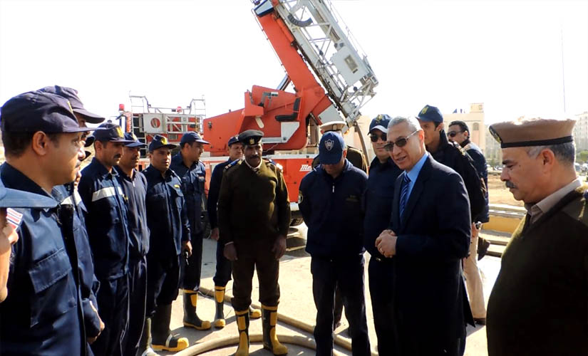 شهد اللواء ممدوح عبد المنصف حبيب مدير أمن المنيا ، يرافقه اللواء مجدي عامر نائب مدير الأمن بيان عملي بإدارة الحماية المدنية في التعامل مع الكوارث والأزمات بالأماكن المرتفعة عن طريق السلم الهيدروليكي.