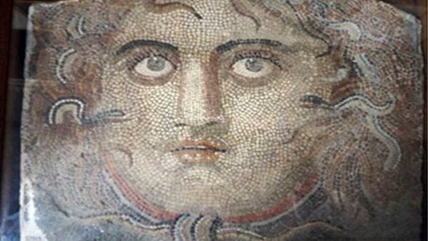 وأشارت عبد الرازق أنه صور علي الفسيفساء رأس الميدوزا محاطة بالثعابين التى تتداخل مع شعرها المجعد لكى تبعث الرعب فى نفوس الأعداء فى ساحات القتال.