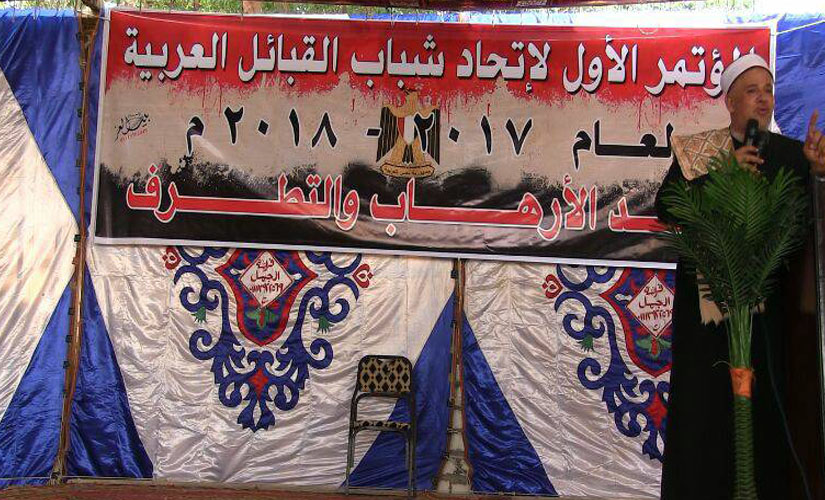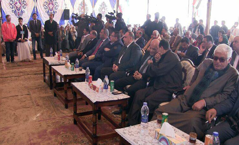 من جانبه دعا الشيخ محمود جمعة أمين عام بيت العائلة، إلي الوقوف دقيقه حداد علي أرواح شهداء الوطن والجيش والشرطة، وقال : نؤيد شباب القبائل العربية ضد الإرهاب والتطرف فالإرهاب ليس له وطن أو دين، وعندما قامت الدولة للأمام حاول بعض الذين لا يريدون خيرًا للبلاد عرقلة مسيرة البناء، وكل المصريين ضد التطرف، ونقول للعالم أجمع مصر لن تنكسر أبدًا ونحن أقوياء بشعبنا وجيشنا وشرطتنا، ونقول لشباب العرب أنتم حماة هذا الوطن، ولابد أن تكونوا يدًا واحده وعلينا التعاون علي البر التقوي، ونقول للرئيس لو خضت البحر لخضناه معك لقد وقفت مع الدولة لتقوم وتنهض ونحن الآن بجوارك لتنهض مصر مرات أخري.