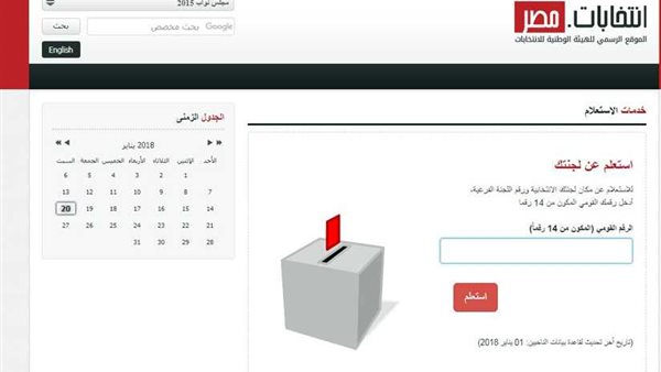 اطلقت الهيئة الوطنية للانتخابات، خدمة "انتخابات مصر"، على موقعها الرسمي، ليتمكن كل مصري له حق الانتخاب من معرفة لجنته عن طريق رقمه القومي.
