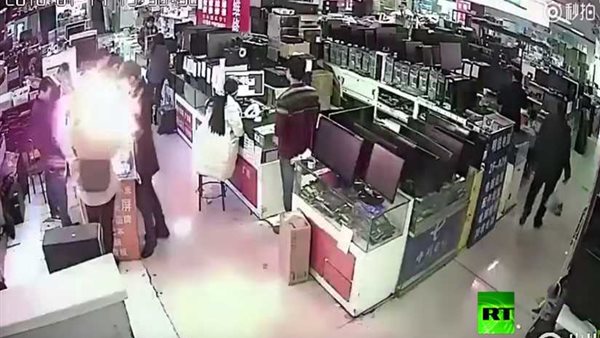 عرضت فضائية «روسيا اليوم»، اليوم الثلاثاء، لقطات مصورة للحظة انفجار بطارية مزيفة "غير أصلية"، في فم مواطن صيني بأحد المراكز التجارية بالصين.