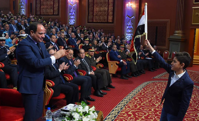 ولم يكن هذا الموقف، هو الأخير للرئيس، فقد شجع السيسي أحد الأطفال، ممن شاركوا في الفيلم التسجيلي الذي تم عرضه في احتفالية عيد الشرطة، حول مجهودات وزارة الداخلية، إلى الاحتفال المقام في مقر أكاديمية الشرطة بالتجمع الخامس، لرفع علم مصر عاليًا.