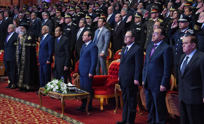 وكان من بين الحضور الدكتور مصطفى مدبولي، وزير الإسكان والقائم بأعمال رئيس مجلس الوزراء، والدكتور علي عبد العال، رئيس البرلمان، والفريق أول صدقي صبحي، وزير الدفاع والإنتاج الحربي و اللواء مجدي عبد الغفار، وزير الداخلية.