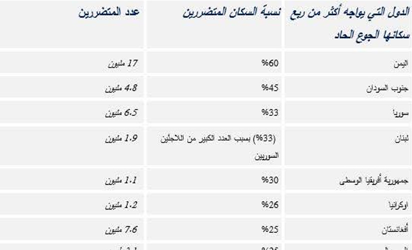 تقرير: 7 دول يواجه أكثر من ربع سكانها الجوع الحاد