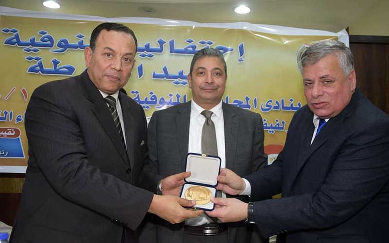 وفى ختام الحفل قام المحامى خالد راشد نقيب المحامين بالمنوفية بتكريم رئيس الجامعة وإهدائه شهادة تقدير ودرع النقابة.