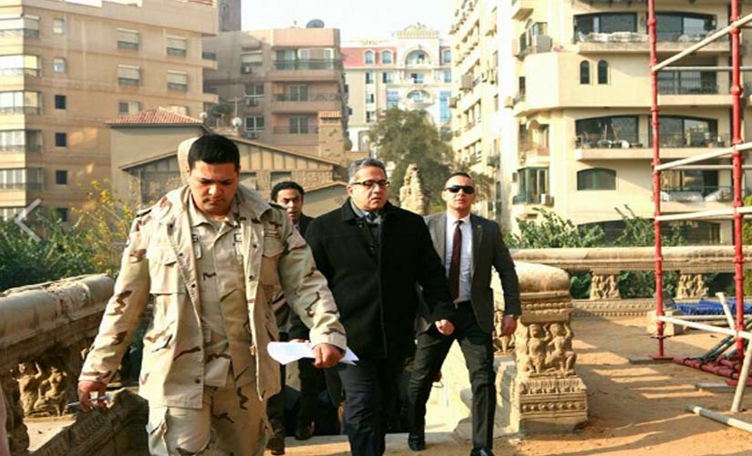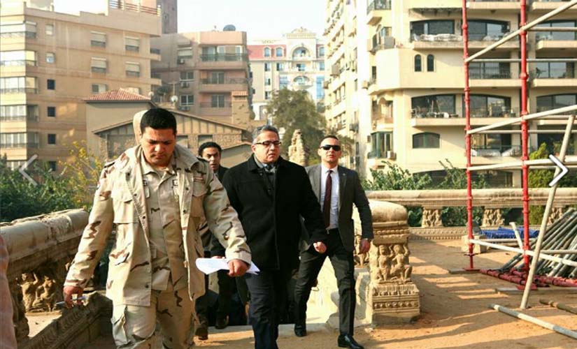 توجه الدكتور خالد العناني وزير الاثار، اليوم الثلاثاء الي قصر البارون إمبان بشارع العروبه بمصر الجديدة و ذلك لتفقد أعمال مشروع الترميم الجارية به حاليا و التي تقوم بها الهيئة الهندسية للقوات المسلحة.