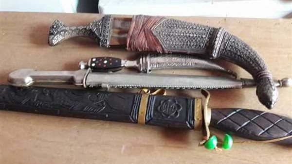 وبتفتيش الحاوية تبين وجود 3 مسدس بماسورة معدنية وجزء خشبى يشتبه أن تكون أثرية و 3 خناجر معدنية منها مطعم بزخارف ويشتبه أن تكون له قيمةأثرية و3 سيوف منها سيف بيد خشب مزخرف داخل جراب وسيفين بيد معدنية مزخرفة برسومات ويد قرد محنطة و70 سجادة و 197 ثوب قماش ألوان مختلفة وكمية من الملابس والمفروشات والأصناف المتنوعة.