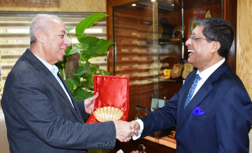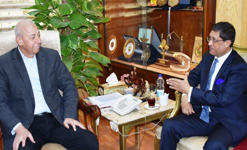 أستقبل اللواء مجدى حجازى محافظ أسوان السفير الهندى بمصر سانجاى باتاتشاريا ، وخلال اللقاء رحب المحافظ بالسفير الهندى فى زيارته الثانية لأسوان بمناسبة حضوره لمشاركة فرقة للفنون الشعبية من دولة الهند الصديقة فى مهرجان الثقافة والفنون الدولى السادس ضمن فعاليات الإحتفال بظاهرة تعامد الشمس .