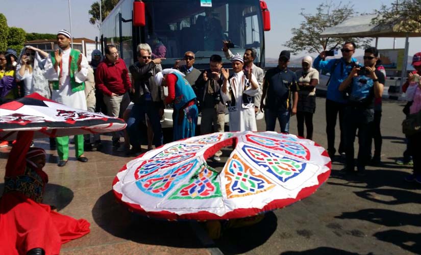 واستقبل مرسى معبد فيلة فرقتي سوهاج للفنون الشعبية وتوشكى التلقائية وقدمت فرقة سوهاج فقرة من عروضها الفنية المميزة.
