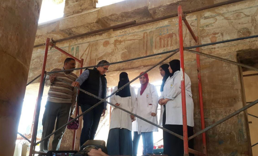 وكان معبد الكرنك اول محطة في الزيارة حيث تم تفقد اعمال الخاصة بتمهيد الطرق داخل المعبد وما يتبعها من تركيب لمشايات لذوي الاحتياجات الخاصة بما يسمح لعجلات اصحاب الاعاقة بالتجول داخل اروقة المعبد بسهولة ويسر.