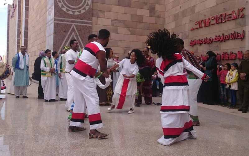 تضمنت الزيارة عرضا لكل فرقة في ساحة المتحف قدمتا خلاله باقة من التابلوهات الفنية الراقصة التي تميز البيئة الأثيوبية والواحات المصرية.
